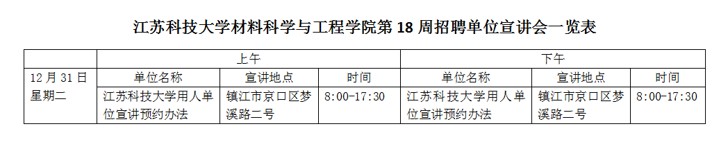 招聘會|材料學院下半年第18周招聘單位宣講會一覽表(2019年12月31日)