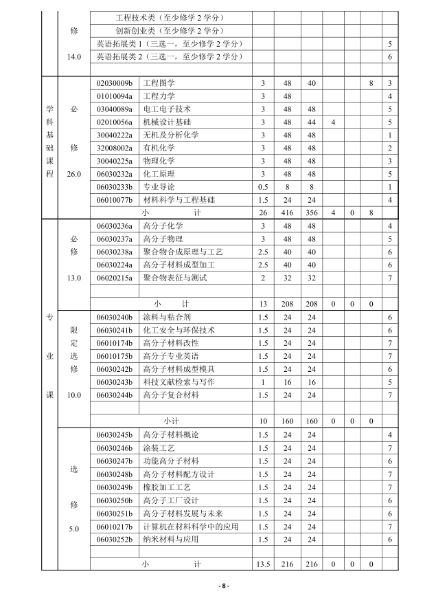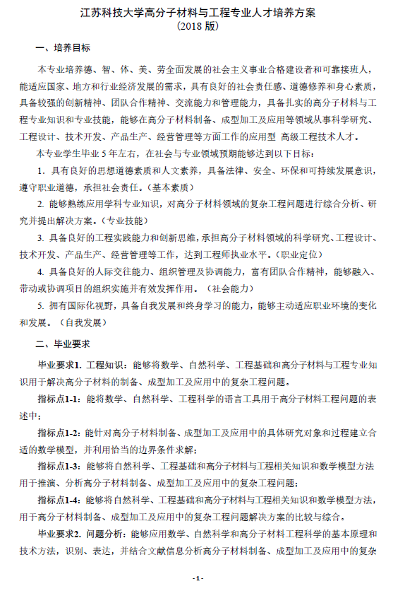 江蘇科技大學高分子材料與工程專業(yè)人才培養(yǎng)方案(2018版)