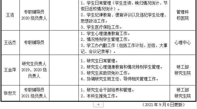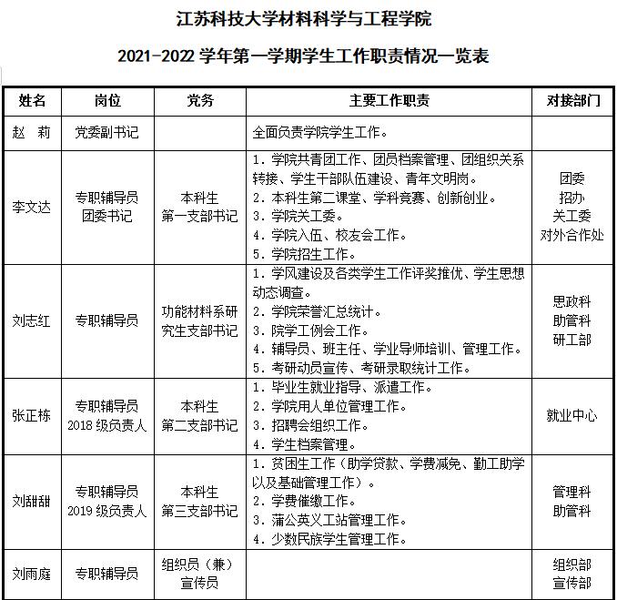 材料學(xué)院2021-2022學(xué)年第一學(xué)期學(xué)生工作職責(zé)情況一覽表