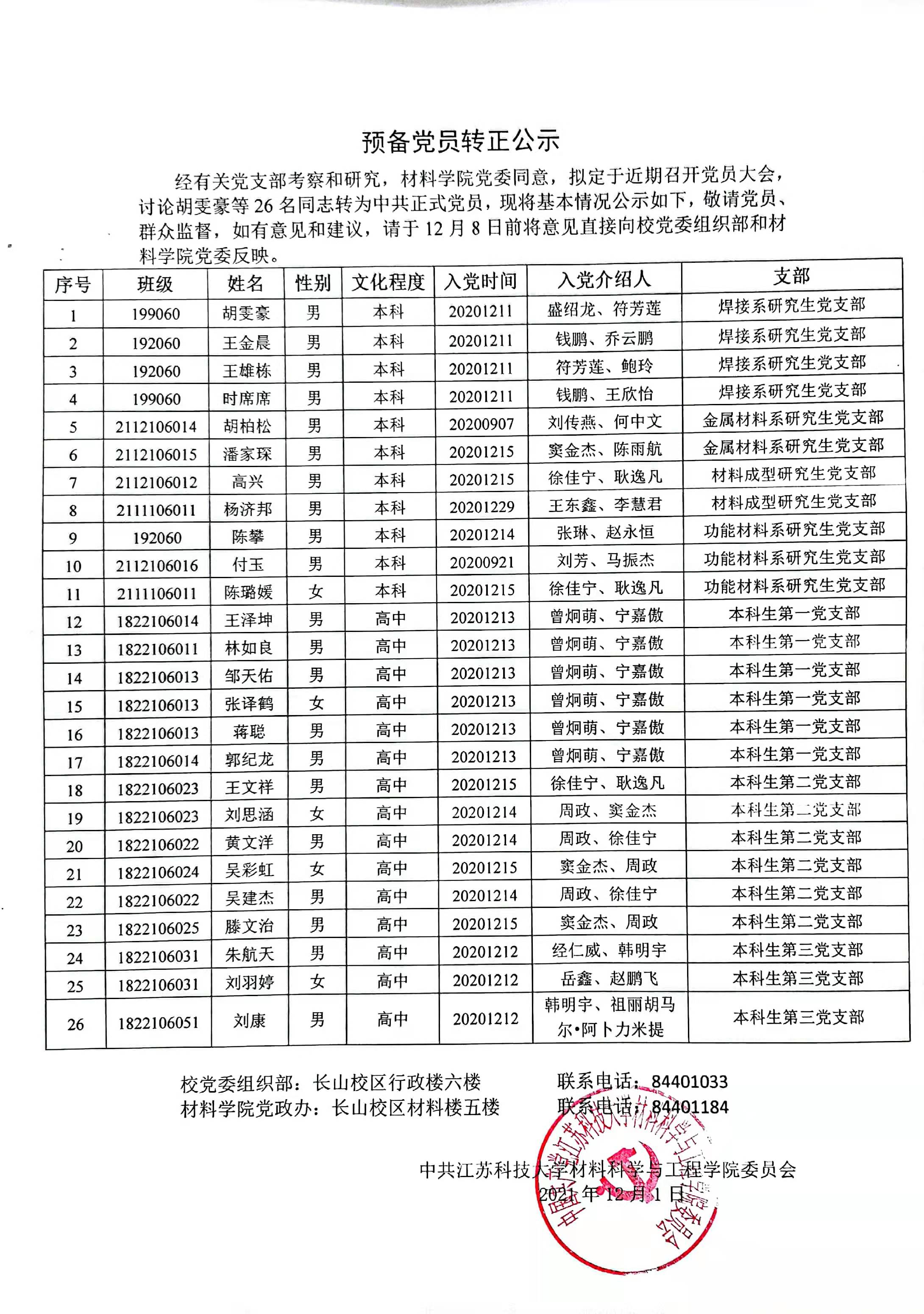 江蘇科技大學材料學院2021下半年預備黨員轉(zhuǎn)正公示