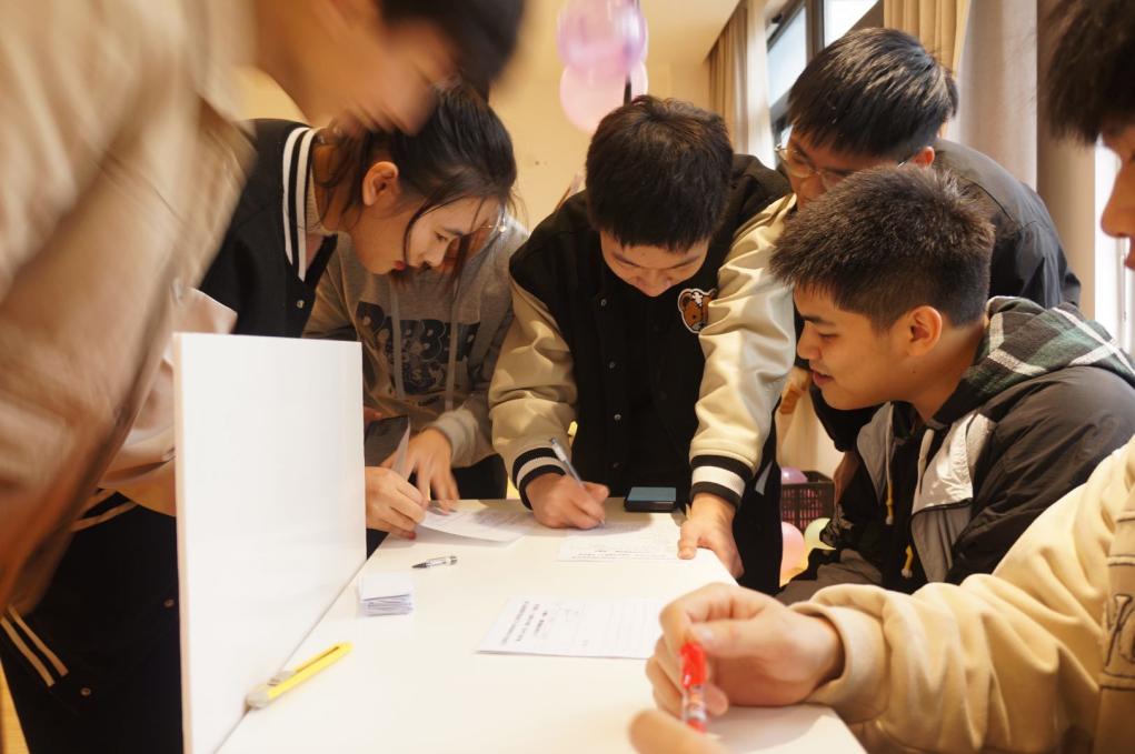 本次活動(dòng)共兩個(gè)環(huán)節(jié)。首先開(kāi)展的是黨的二十大知識(shí)競(jìng)賽。會(huì)場(chǎng)設(shè)置了“學(xué)”“習(xí)”“二”“十”“大”五個(gè)打卡點(diǎn),以5人一組的形式參賽,共分為9組,用時(shí)越短得分越高。兩位老師也參與到小組中,與同學(xué)們一起集思廣益、認(rèn)真答題。最終第五組同學(xué)以20分41秒的成績(jī)率先完成作答。