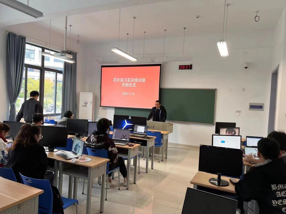 11月14日-11月18日材料科學(xué)與工程學(xué)院聯(lián)合摩爾精英舉行了芯片設(shè)計(jì)實(shí)習(xí)實(shí)訓(xùn)培訓(xùn)。14日上午,培訓(xùn)班舉行開班儀式。材料學(xué)院副院長王宇鑫、功能材料系副主任袁妍妍參加開班儀式。