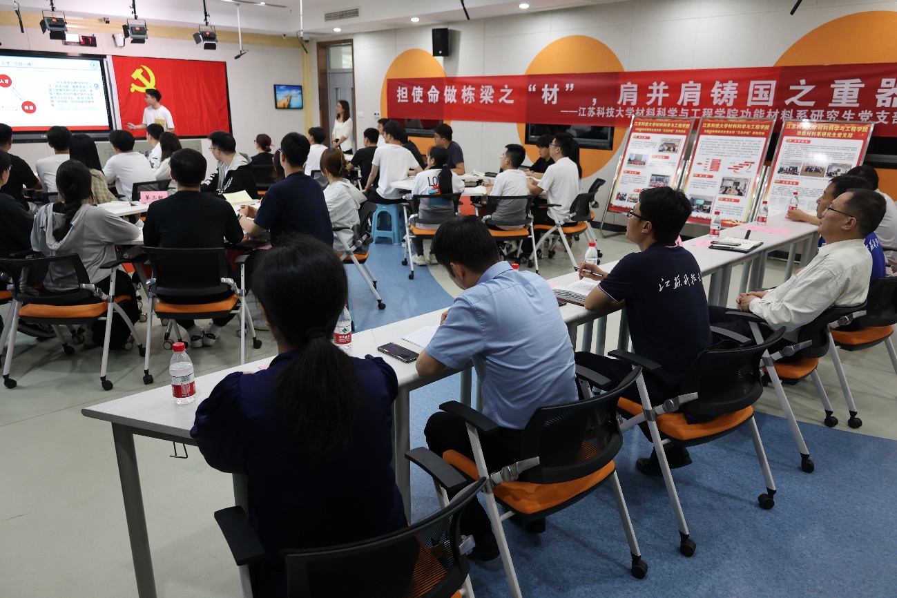 深入開展學(xué)習(xí)貫徹習(xí)近平新時(shí)代中國特色社會主義思想主題教育,響應(yīng)學(xué)思想、強(qiáng)黨性、重實(shí)踐、建新功的總要求,通過讀原著、學(xué)原文、悟原理汲取奮發(fā)進(jìn)取的智慧和力量,529日下午材料學(xué)院功能材料系研究生黨支部在文理大樓108智慧教室開展“擔(dān)使命做棟梁之‘材’,肩并肩鑄國之重器”為主題的集中理論學(xué)習(xí)。學(xué)校黨委常委、副書記湯建旁聽了支部理論學(xué)習(xí),機(jī)關(guān)黨委書記、組織部副部長祁凱,宣傳部副部長張強(qiáng),材料學(xué)院黨委書記李瑞峰、副書記楊海濤,支部全體黨員參加。