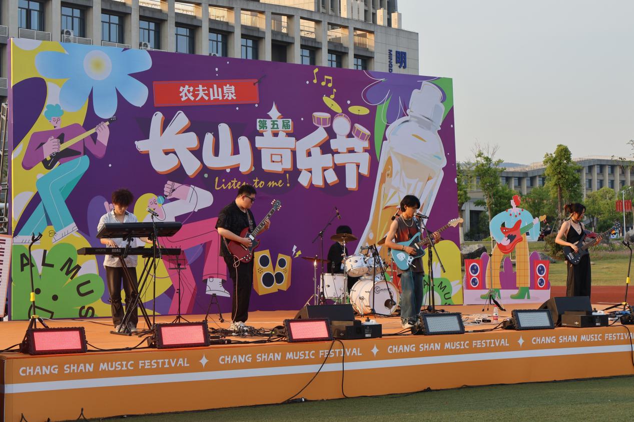 整場音樂節(jié)由校內(nèi)五支樂隊和一支來自江蘇大學(xué)京江學(xué)院的樂隊為大家?guī)砭实难莩觥J紫龋?/span>Checkmate將殺樂隊帶來了《紅色高跟鞋》和《遠走高飛》兩首開場歌曲,引領(lǐng)觀眾們步入這個充滿活力的夏日午后;緊接著憂郁繆可樂隊深情的演繹《夢特別嬌》和《初戀》等歌曲,帶觀眾們重溫那些青澀而美好的時光;彌霧棱彩樂隊用《黑色柳丁》點燃現(xiàn)場的氣氛,用《著魔》的瘋狂節(jié)奏帶來一場搖滾盛宴。