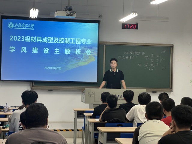 9月26日,一場(chǎng)別開生面的學(xué)風(fēng)建設(shè)主題班會(huì)在篤學(xué)樓舉行。材成專業(yè)學(xué)院聯(lián)系領(lǐng)導(dǎo)趙勇副院長(zhǎng),材成專業(yè)系主任臧千昊老師,輔導(dǎo)員曹天龍老師以及2023級(jí)材成專業(yè)全體學(xué)生參加。會(huì)議由輔導(dǎo)員汪孟超老師主持。