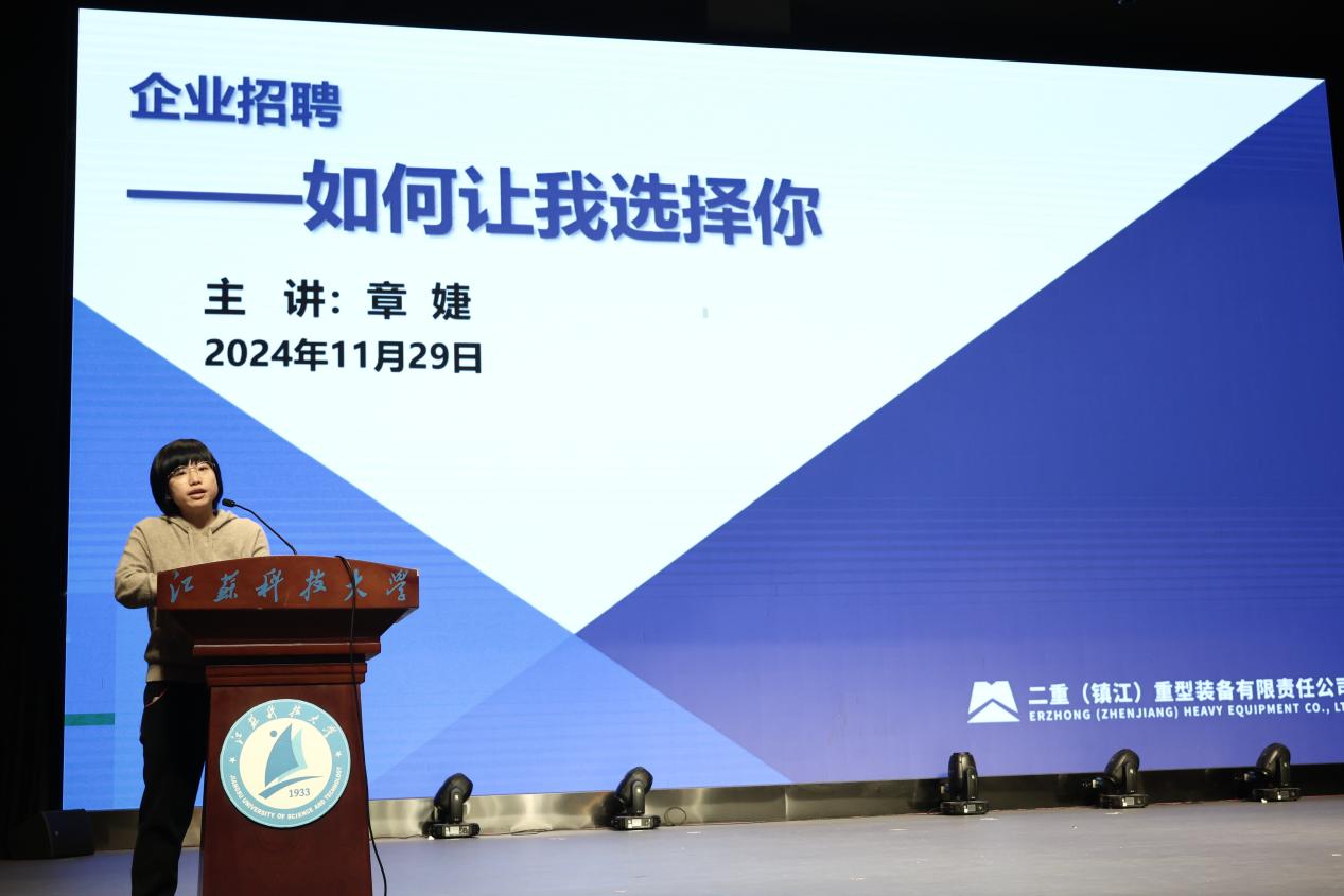 二重(鎮(zhèn)江)重型裝備有限責(zé)任公司的資深人力資源管理經(jīng)理章婕經(jīng)理從企業(yè)角度出發(fā),剖析了當(dāng)前就業(yè)形勢(shì),并就央國(guó)企的人才需求、優(yōu)勢(shì)等方面進(jìn)行了詳盡闡述,建議同學(xué)們通過(guò)秋招、春招等機(jī)會(huì),多多了解企業(yè)招聘需求,再結(jié)合自身情況提前規(guī)劃職業(yè)生涯。