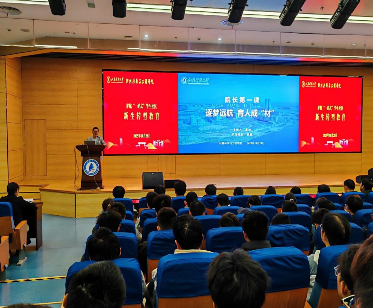 幫助2025級新生實現(xiàn)角色轉(zhuǎn)變1028,材料學院在護航“一站式”學生社區(qū)開展院長第一課暨新生轉(zhuǎn)型教育系列活動。學院院長晏超黨委副書記楊海濤25級輔導員和一站式學生社區(qū)530名本科新生參加活動。