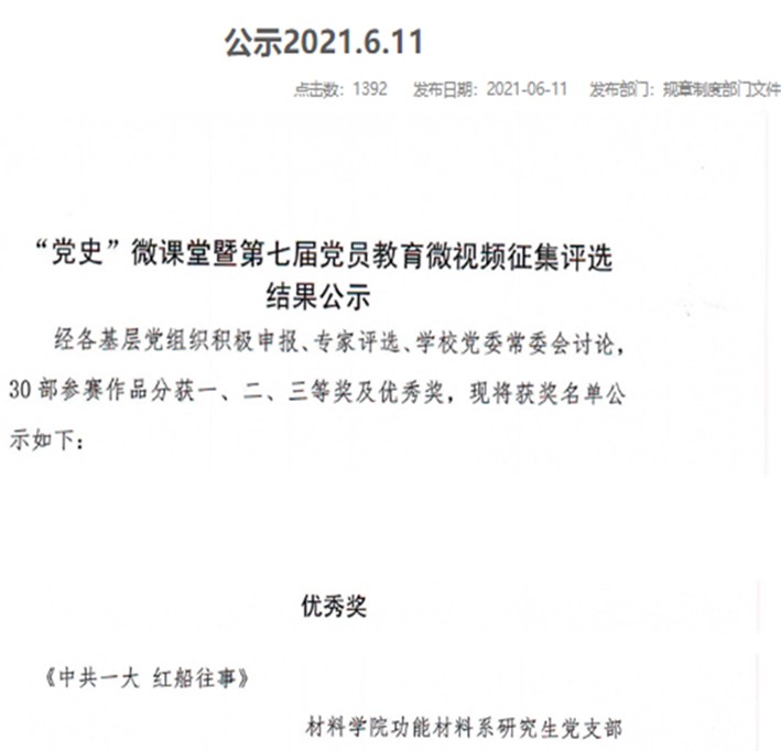 “黨史”微課堂暨第七屆黨員教育微視頻征集評選——優(yōu)秀獎;時間:20216