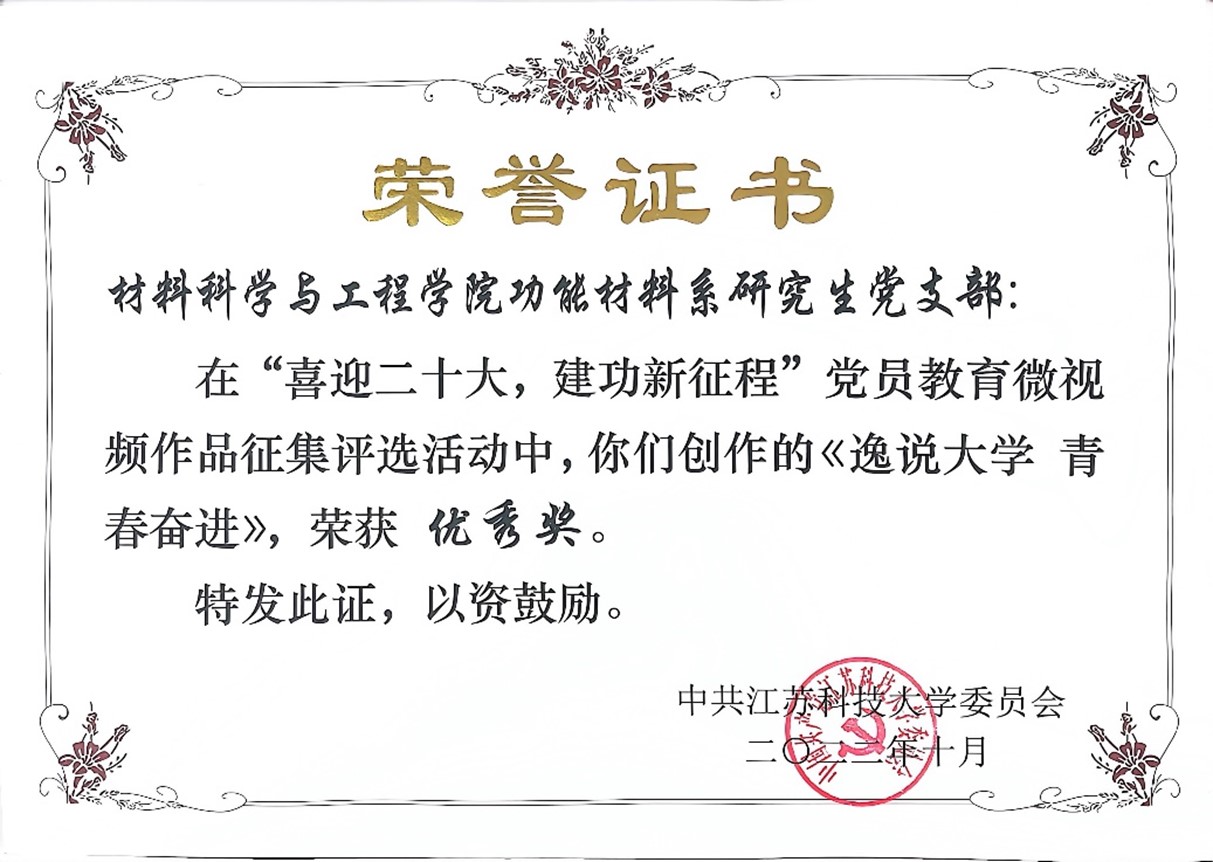 “喜迎二十大,建功新征程”黨員教育微視頻征集評選——優(yōu)秀獎;時間:202210